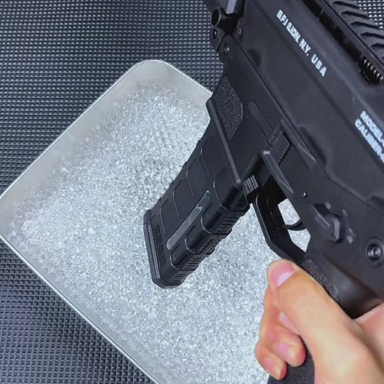 The gel ball should be taken out of the bag and placed in a large bucket of water. Wait until the gel balls have grown to their full size after letting them soak in the water for three to four hours. You can fill up the magazine and begin playing once the gel balls have grown to their full size (7-8mm). There must be no water inside the magazine itself. So, before you begin to fill your magazine, be sure to first drain the water from the bucket. 1 pack = 10,000 GelBalls