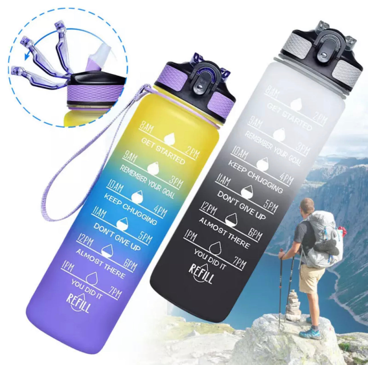 1L Sports Water Bottle Gym Travel Drinking Leakproof Bottle with Straw Bpa Free.